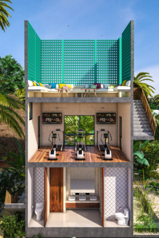 El proyecto Diez.Cinco goza de un concepto residencial inigualable, que incluye 10 villas y 16 townhouses, a pocos metros del mar, tiene un parque central con todas las amenidades que te puedes imaginar para que el mar y la playa pasen a un segundo término. El parque incluirá palapa-bar, piscina, área de asador, asoleaderos, gimnasio, baños públicos y mirador, así como una cancha deportiva de arena, piscina infantil, palapa con juegos de mesa, arenero y módulo de juegos.